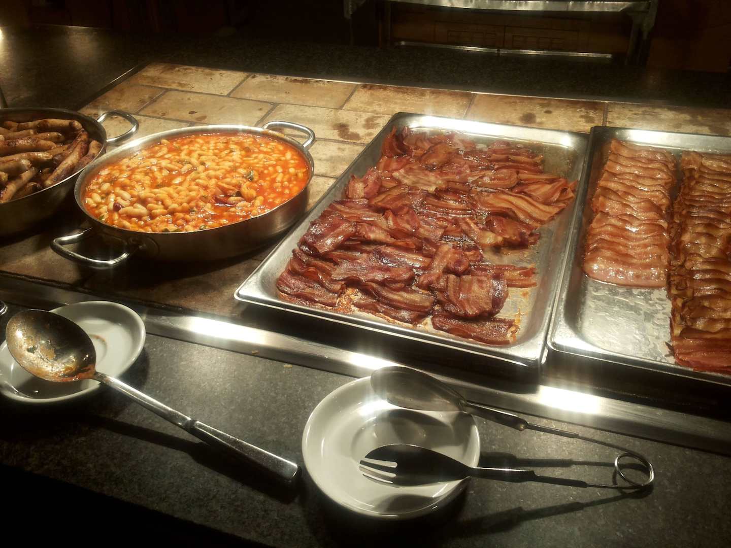 Frühstücksspeck. Er schwamm förmlich im Fett