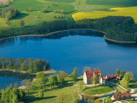 Luftaufnahme des Hotels Schloss UlrichshusenIdyllisch am "hauseigenen" Ulrichshusener See gelegen liegt das Hotel-Schloss der Familie von Maltzahn. Das Hotel-Schloss und die große Konzertscheune bilden auch den Mittelpunkt der jährlichen "Festspiele-Mecklenburg-Vorpommern" mit vielen Veranstaltungen um Kultur und Genüsse