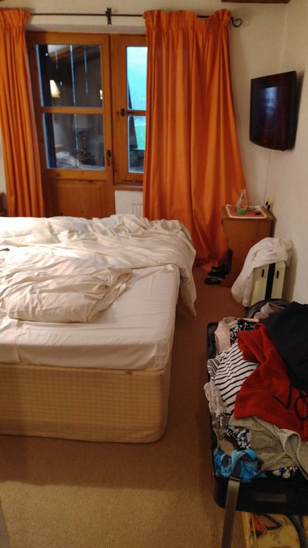Zimmer winzig, Bettdecke fleckig, Badezimmer hinter der Toilette schmuddelig.Spinnweben an der Decke.