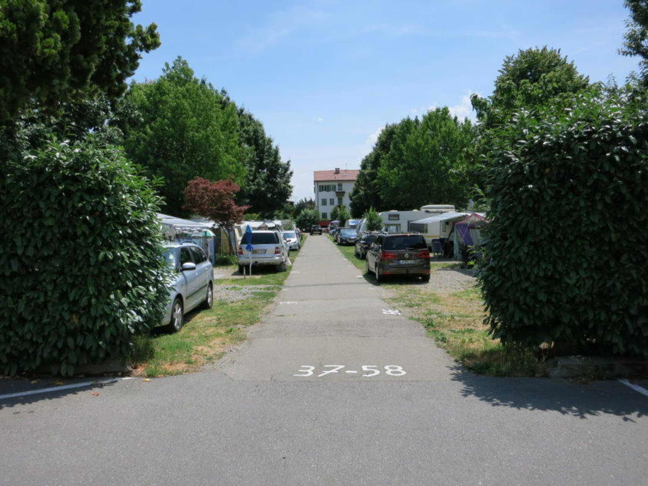 Blick zu den Stellplätzen