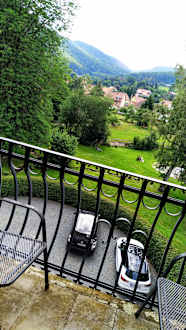 Ausblick vom Luisenzimmer in den parkähnlichen Garten