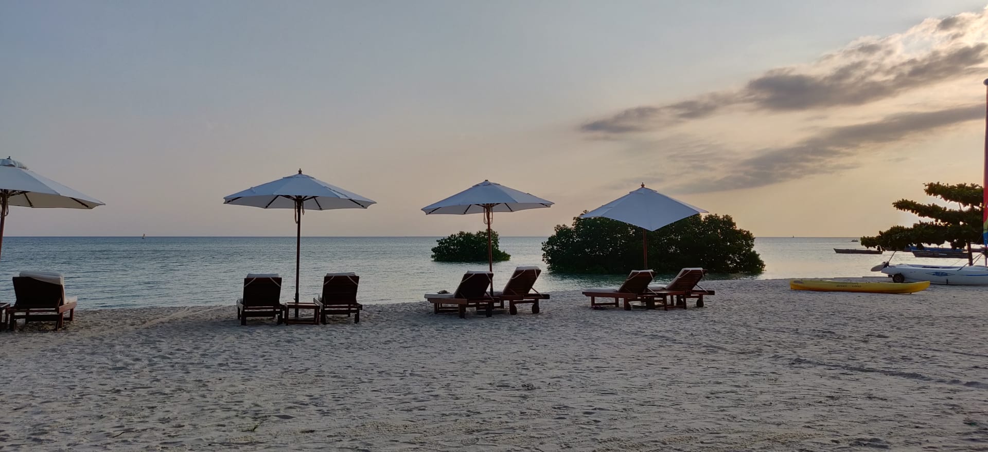 Der kleine Privatstrand. Hier gibt es ebenfalls ein Gebäude mit Bar, Golfshop(?) und Duschen/WCs.