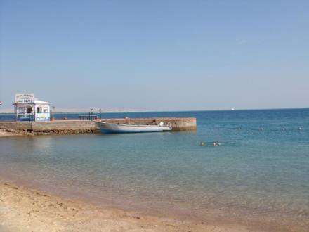 Von hier aus gehen tägliche Boot- und Tauchtfahrten aufs Rote Meer. Ehab kommt an den Strand und stellt Ihnen das Programm vor.