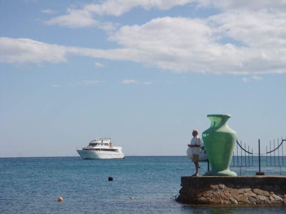 Vom Strand gelangt man direkt auf die Hoteleigene Mole. Im klaren Wasser sieht man große farbige Fischer, die man mit Brotkrumen füttern kann.