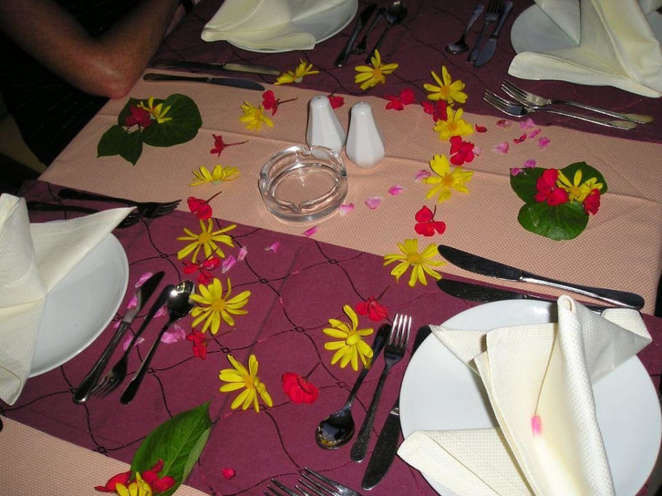 " Schöner Tisch "An meinem Geburtstag hatten wir einen mit frischen Blüten gedeckten Tisch... total nett !