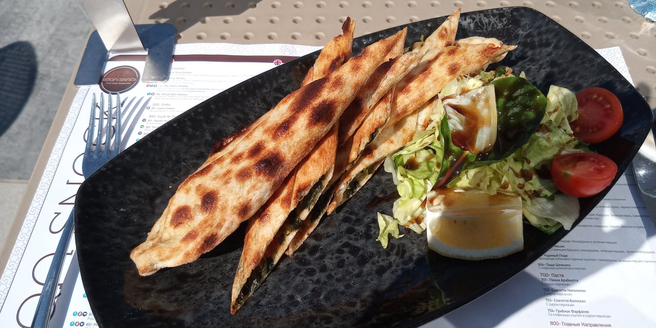 Spinatpide in der Snackbar bei Sonnenschein und 20 Grad im Februar! Frisch und superlecker.