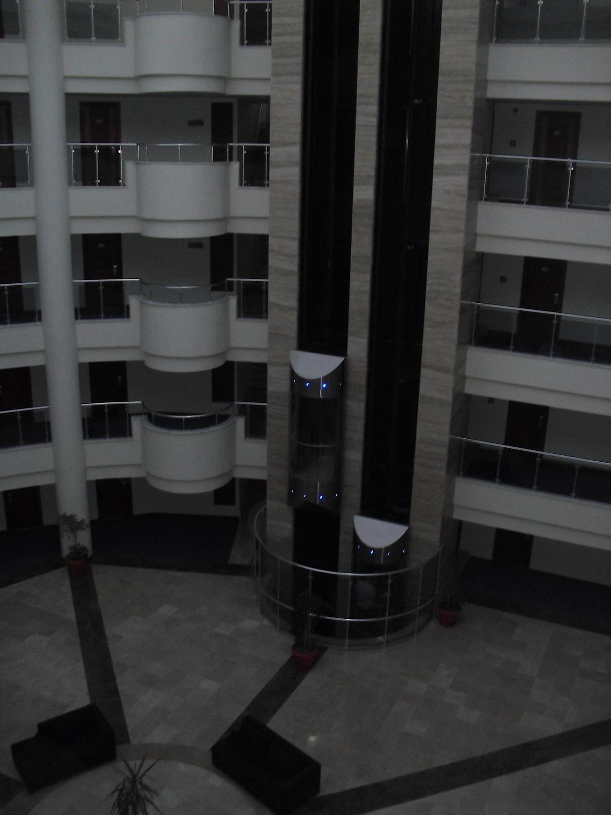 Ein Blick zum gläsernen Fahrstuhl