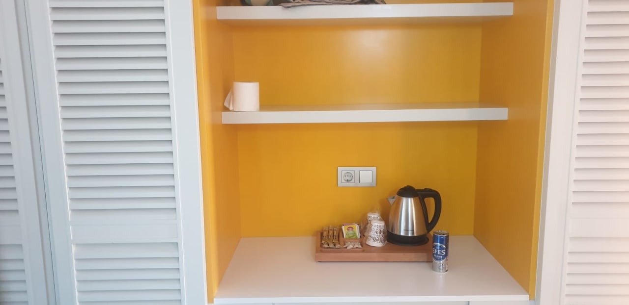 Wasserdichter, Teebeutel darunter befindet sich die Minibar