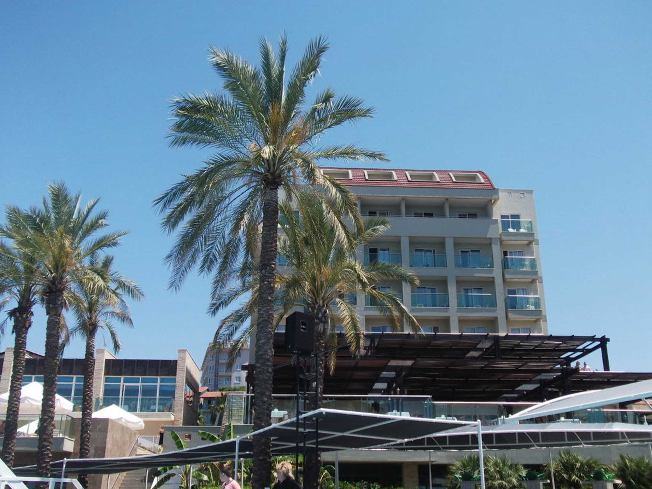 Вид на отель со стороны бассейна
