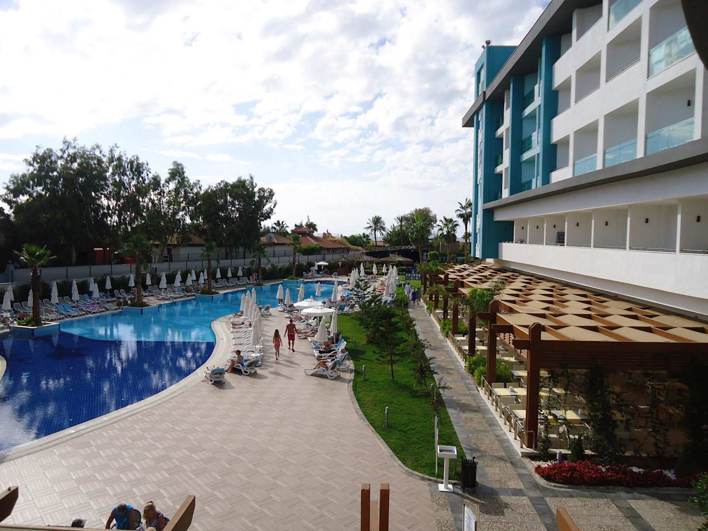 Blick auf Pool u. Außenterrasse