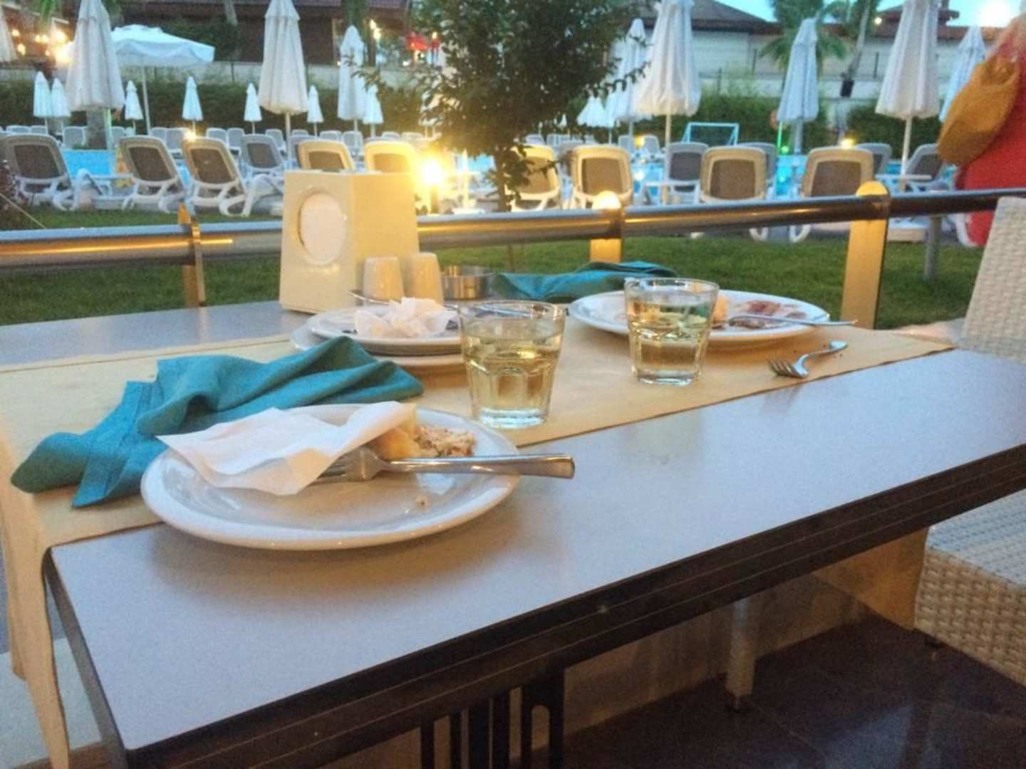 Teller wurden nicht abgeräumt Statt Weißwein in Weingläsern gab es Weißwein in Soda Gläser Es wurden zum Abendessen manchmal Plastikgläser mit Getränke serviert, 5 Sterne Hotel !!!!!!!