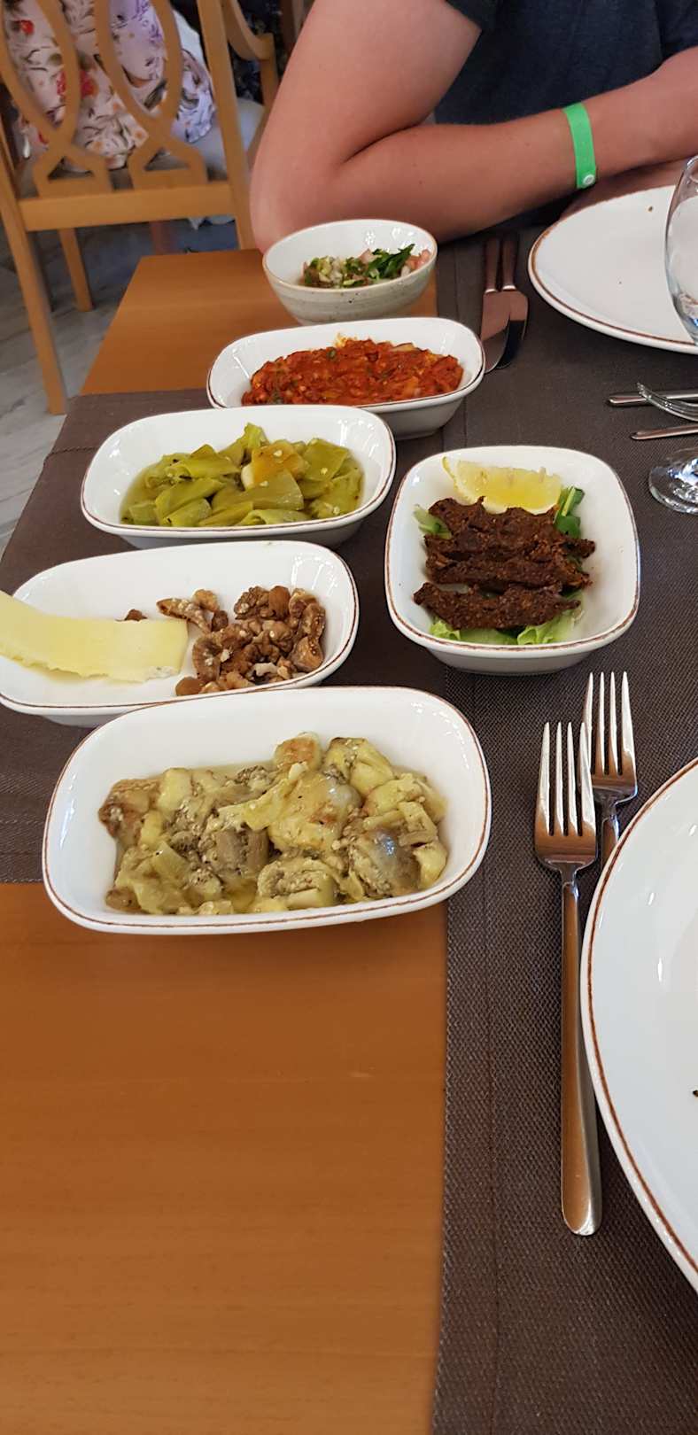 Vorspeise des à la carte Restaurant mit Schimmel am Käse. Keine Karte im Restaurant nur Wahl zwischen 2 Gerichten.