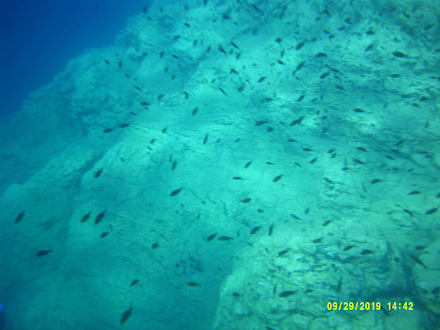 Fische vor dem Felsen im Meer