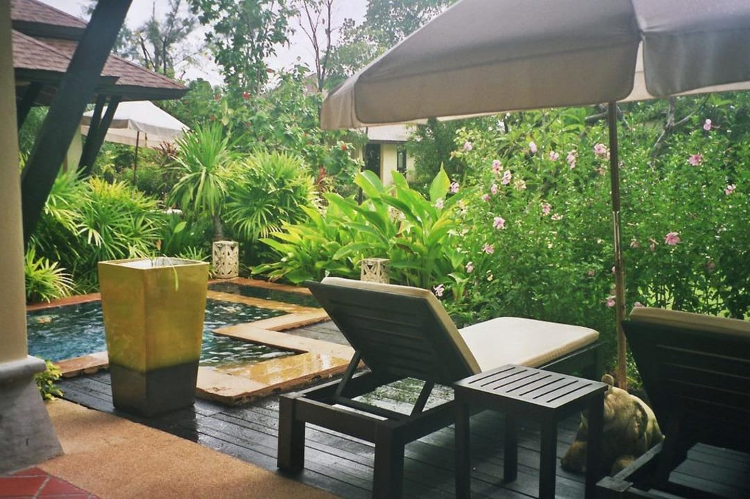 Terrasse der Pool-VillaTerrasse mit eigenen Liegen und Sonnenschirm. Uneinsehbar natürlich.