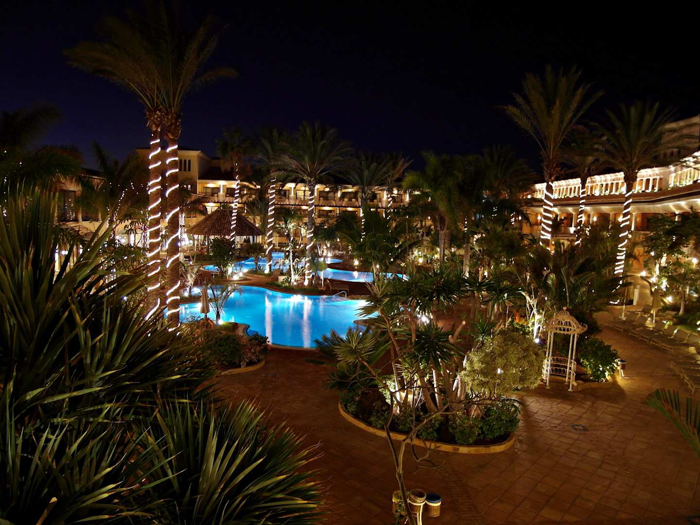 WeihnachtsbeleuchtungZur Weihnachtszeit sind die Palmen dekorativ mit Lichterketten umwickelt