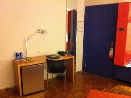 Schreibtisch und Eingang Zimmer 308