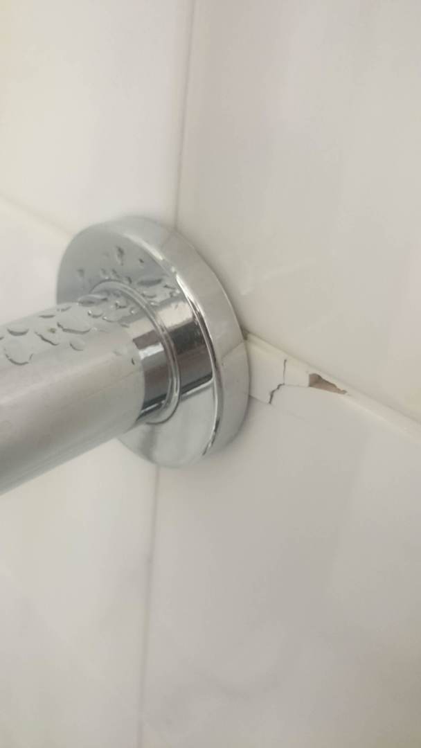 Zerbrochende Fliesen Duschkabine,VerletzungsgefahrFällt eine Teil der zerbrochenen Fliese in die Duschwanne besteht Verletzungsgefahr
