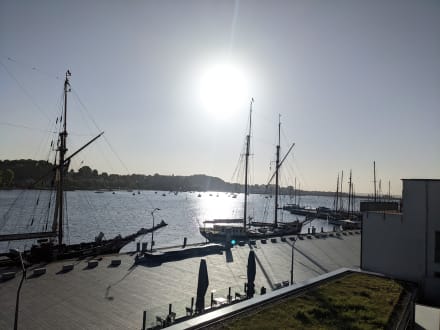 Blick vom Balkon auf tolle Schiffe,die dort direkt anlegen
