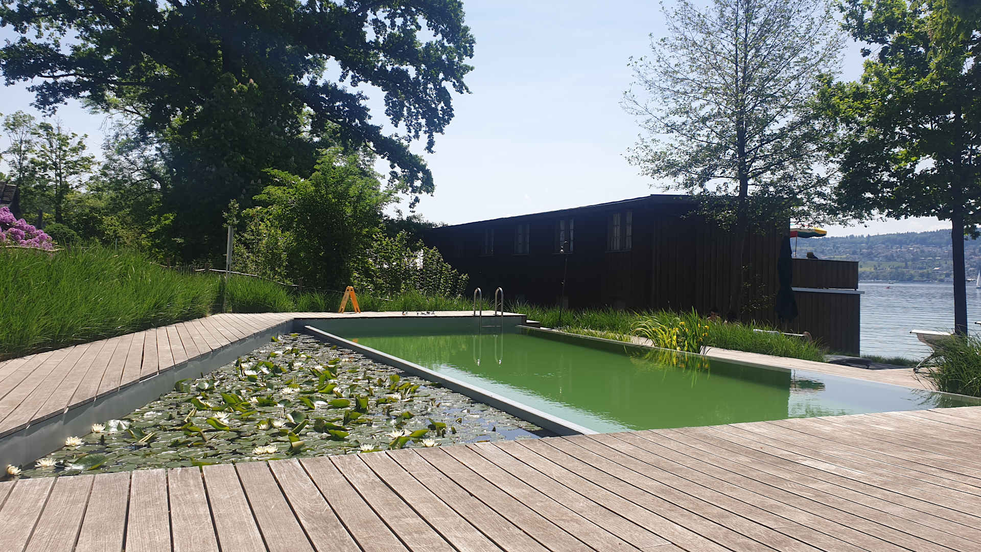 Der herrliche Pool mit dem Seerosenteich beim See.