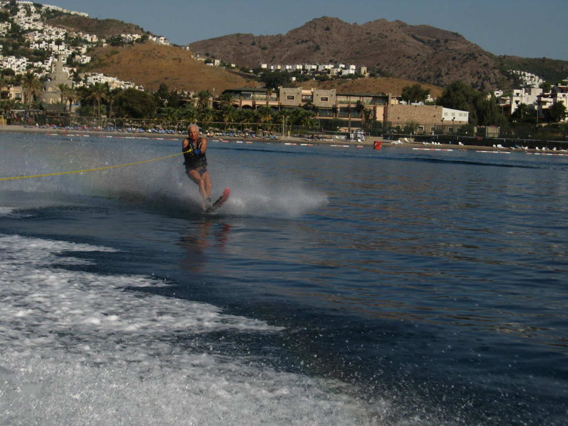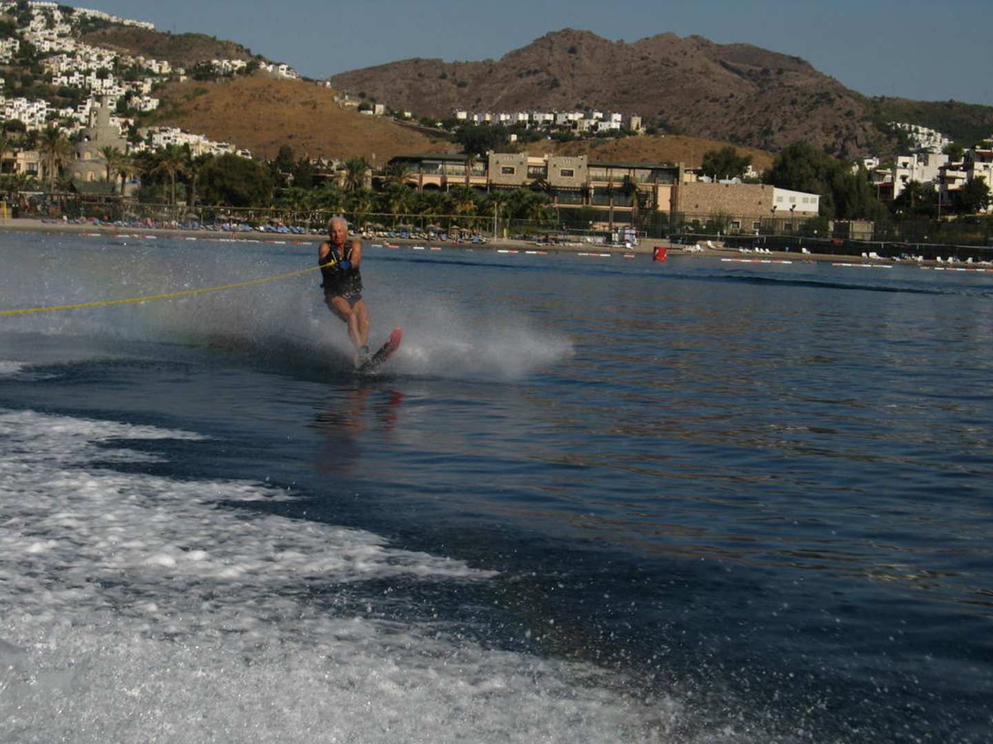 Monowasserski Mein Mann als Monoskifahrer vor schöner Hintergrundkulisse