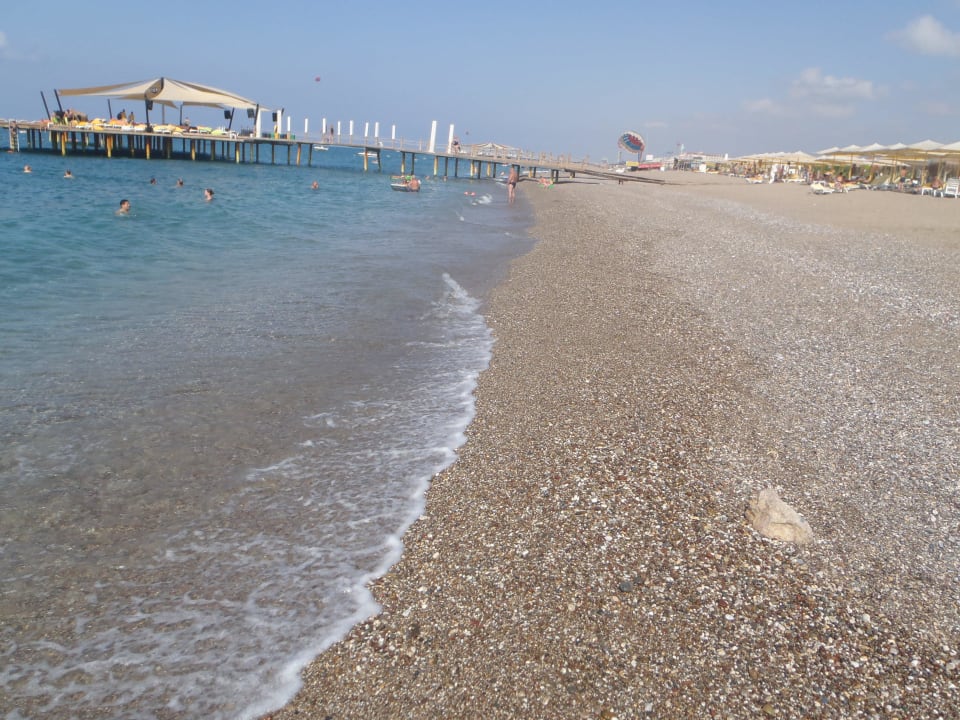 StrandGrobkörnig an der Wasserlinie, für empfindliche Personen Badeschuhe empfohlen. Dafür sehr klares Wasser