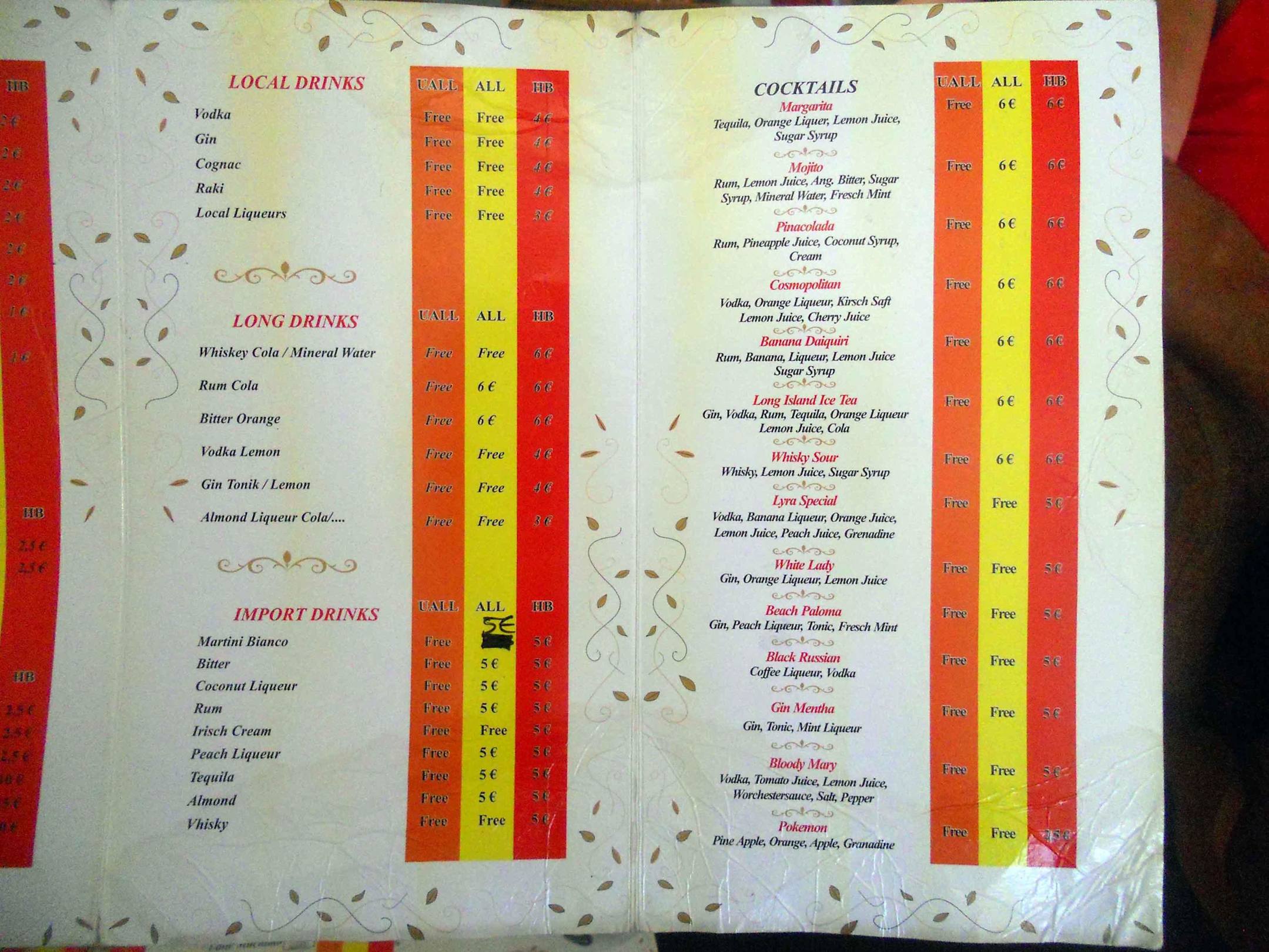 Gelbe Spalte = für Europäer, orange für OstteuropEs gibt 2 Arten von All Inclusive