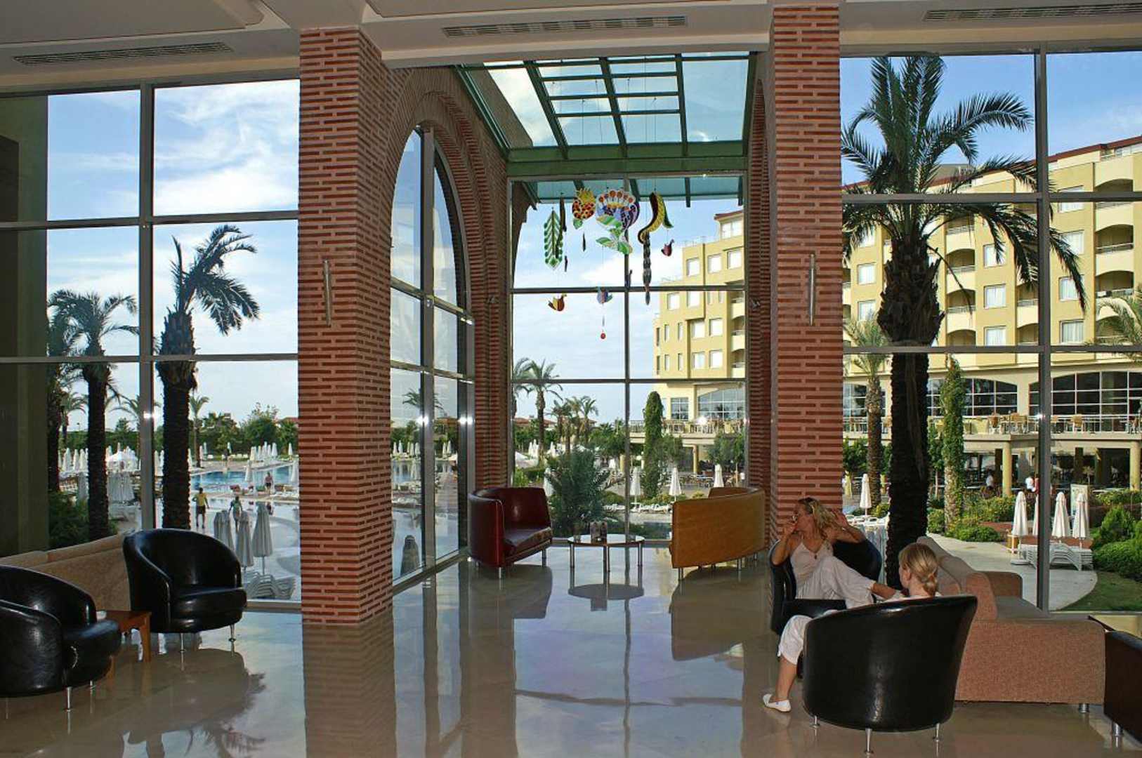 Lobby-Bereich mit Pool-Blick.
