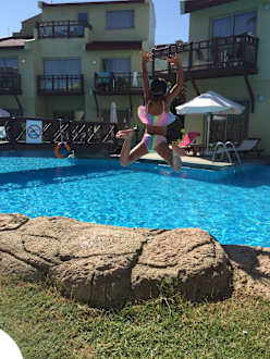 Sprung von der Insel im Pool