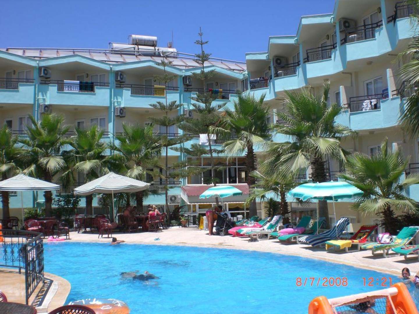 Der Blick vom Pool auf das Hotel
