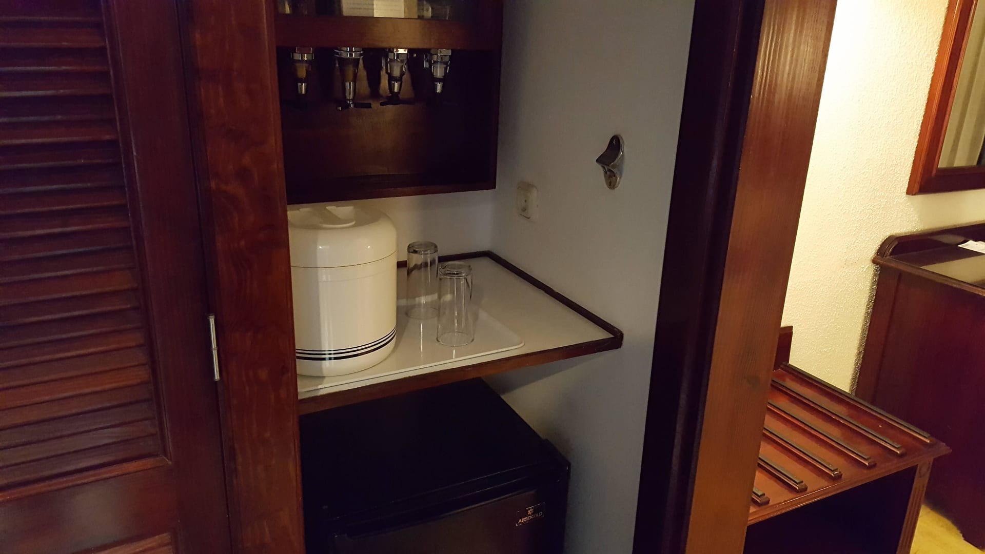 Getränkespender und gefüllter Kühlschrank