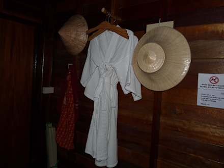 Tasche , Bademäntel und Hüte zum Ausleihen