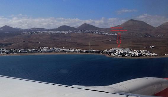 Der rote Pfeil markiert das Hotel Sentido Lanzarote Aequora