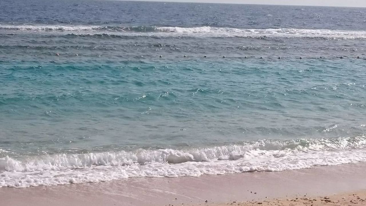 Strand mit ausgebaggerter "Badewanne", wo man auch bei starken Wind baden, schwimmen und schnorcheln kann, sogar dort gab es viele Fische zu sehen