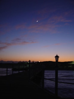 Blick vom Steg zur AnlageBlick von einem der zwei Stege Richtung Hotelanlage bei Sonnenuntergang