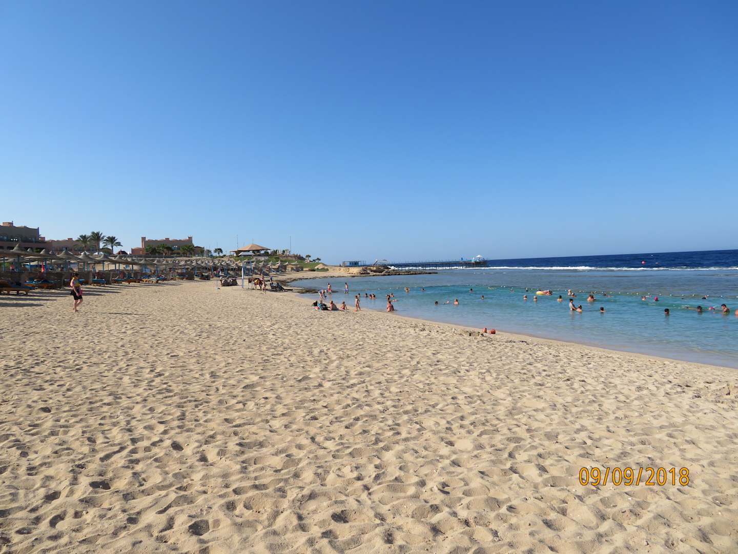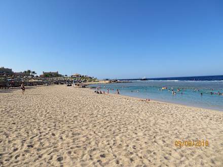 StrandSehr grobkörniger Sand wegen der vielen Muscheln und kaputten Korallen. Badeschuhe sind hilfreich