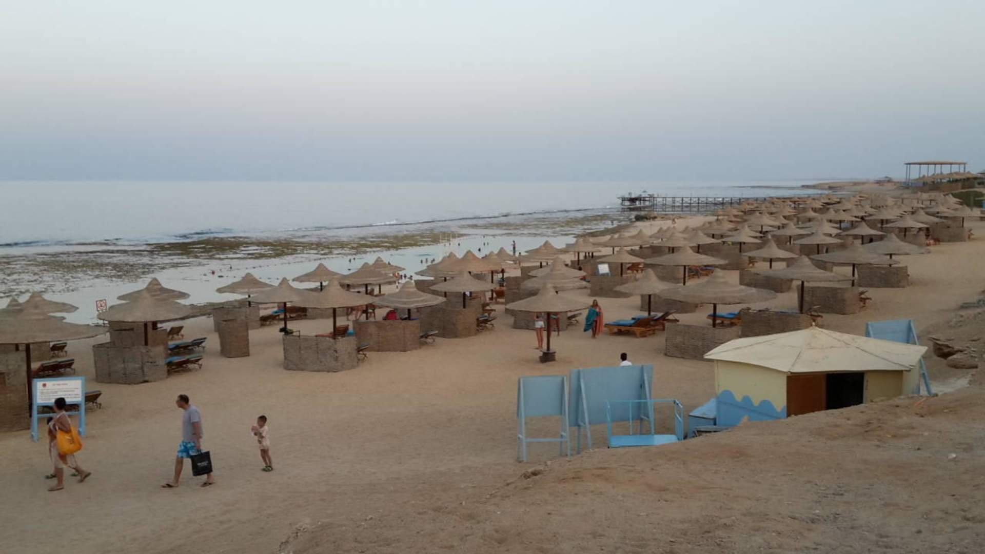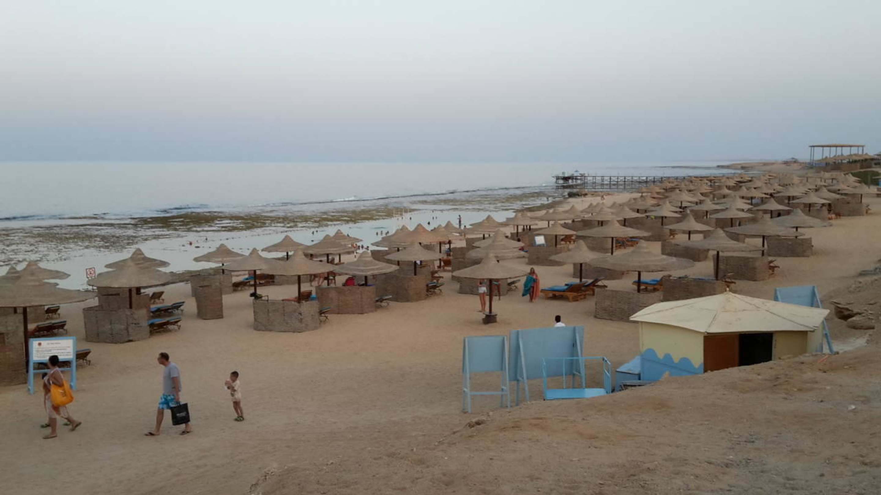 Strand, Riff und Sonnenschirme