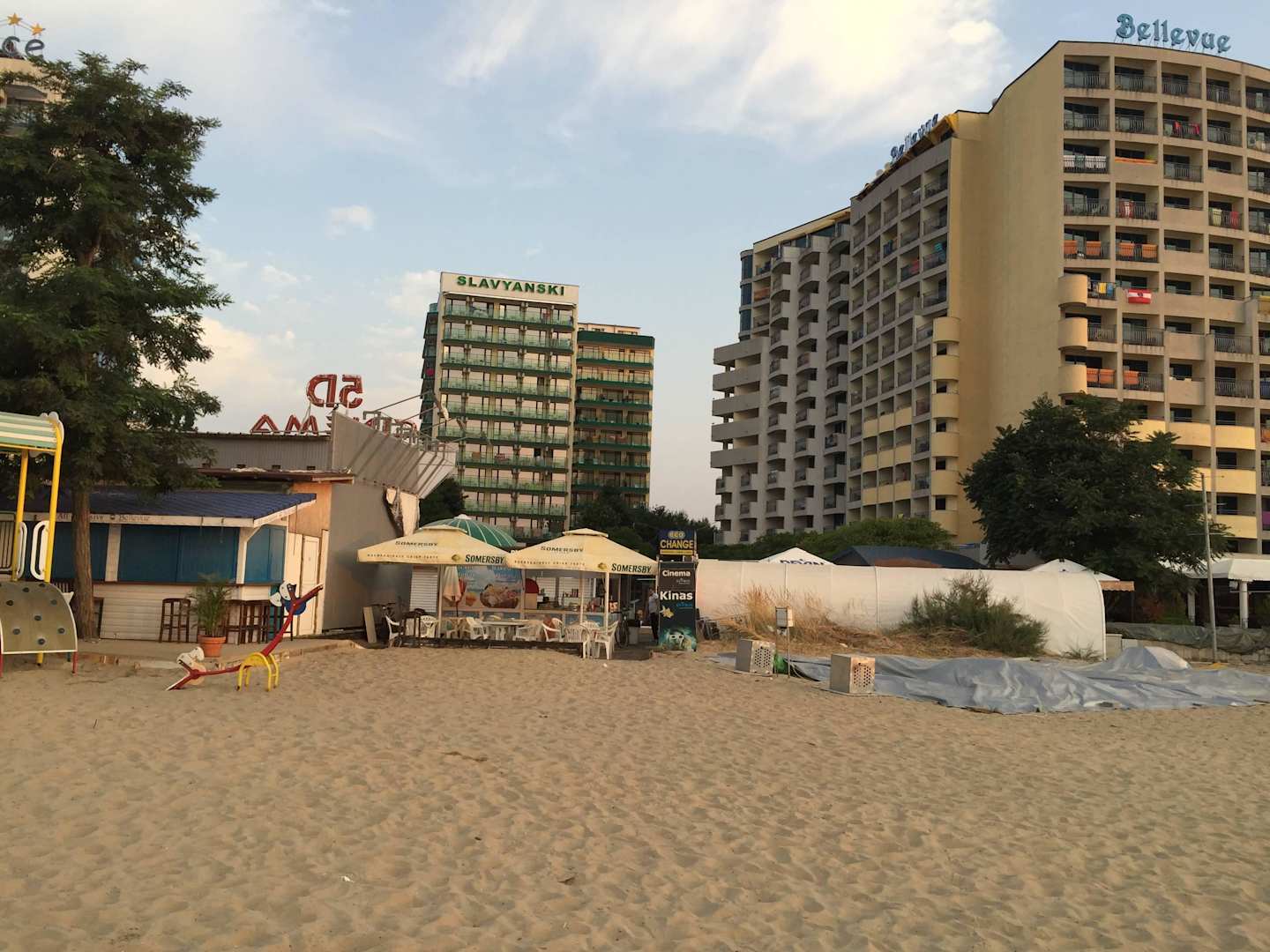 Links die Blaue ist die Strandbar (sehr klein)