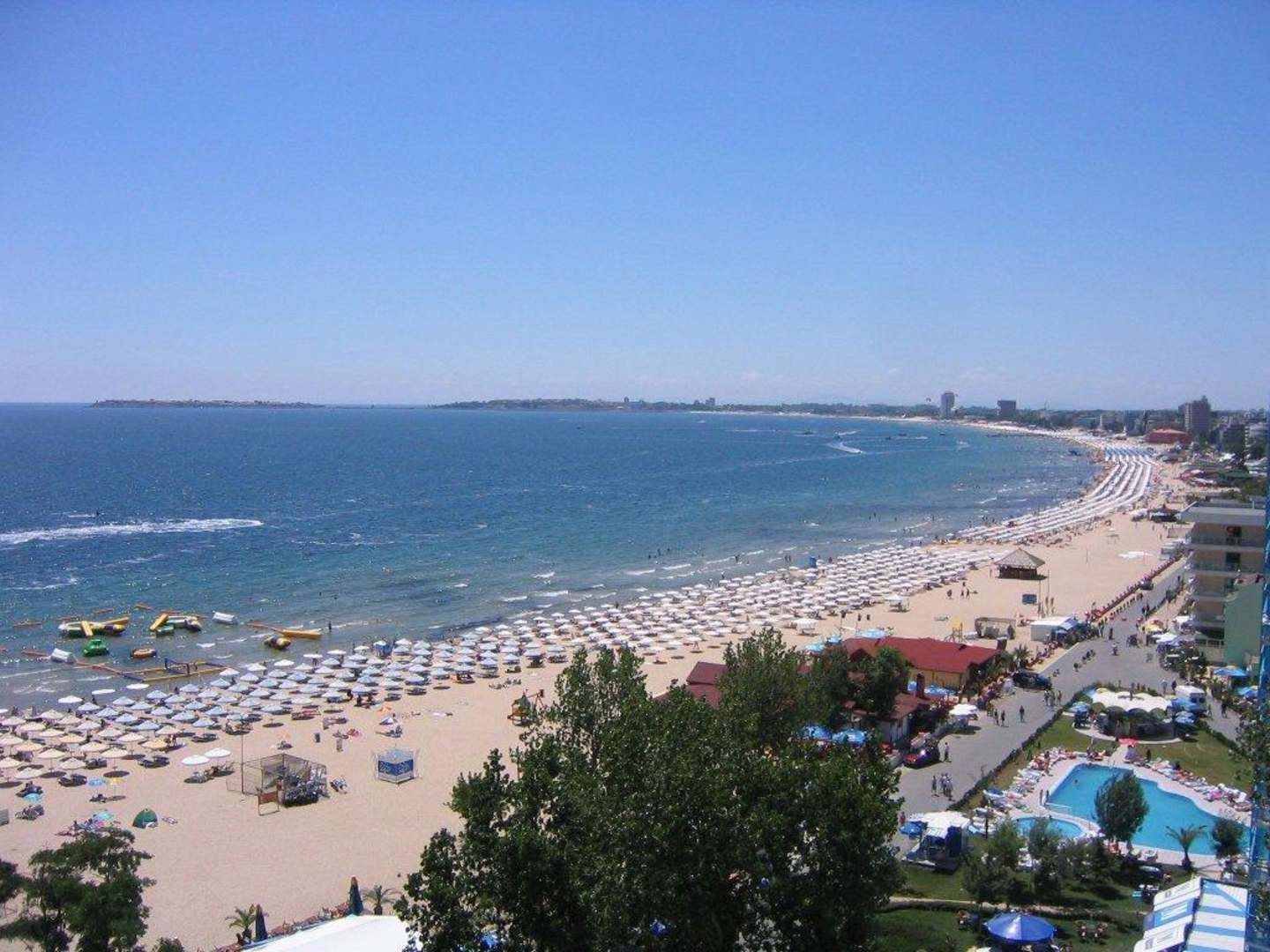 Sonnenstrand, Sicht auf den Strand vom Hotel Bellevue.