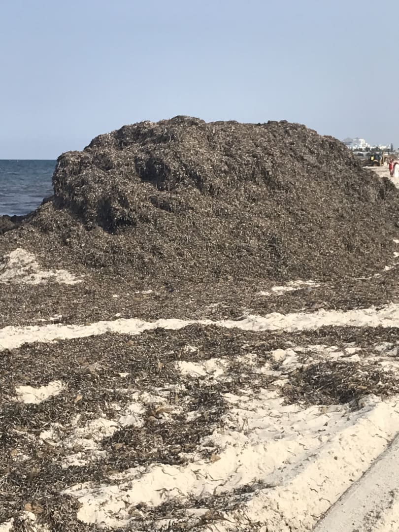 Berge von Algen am Strand