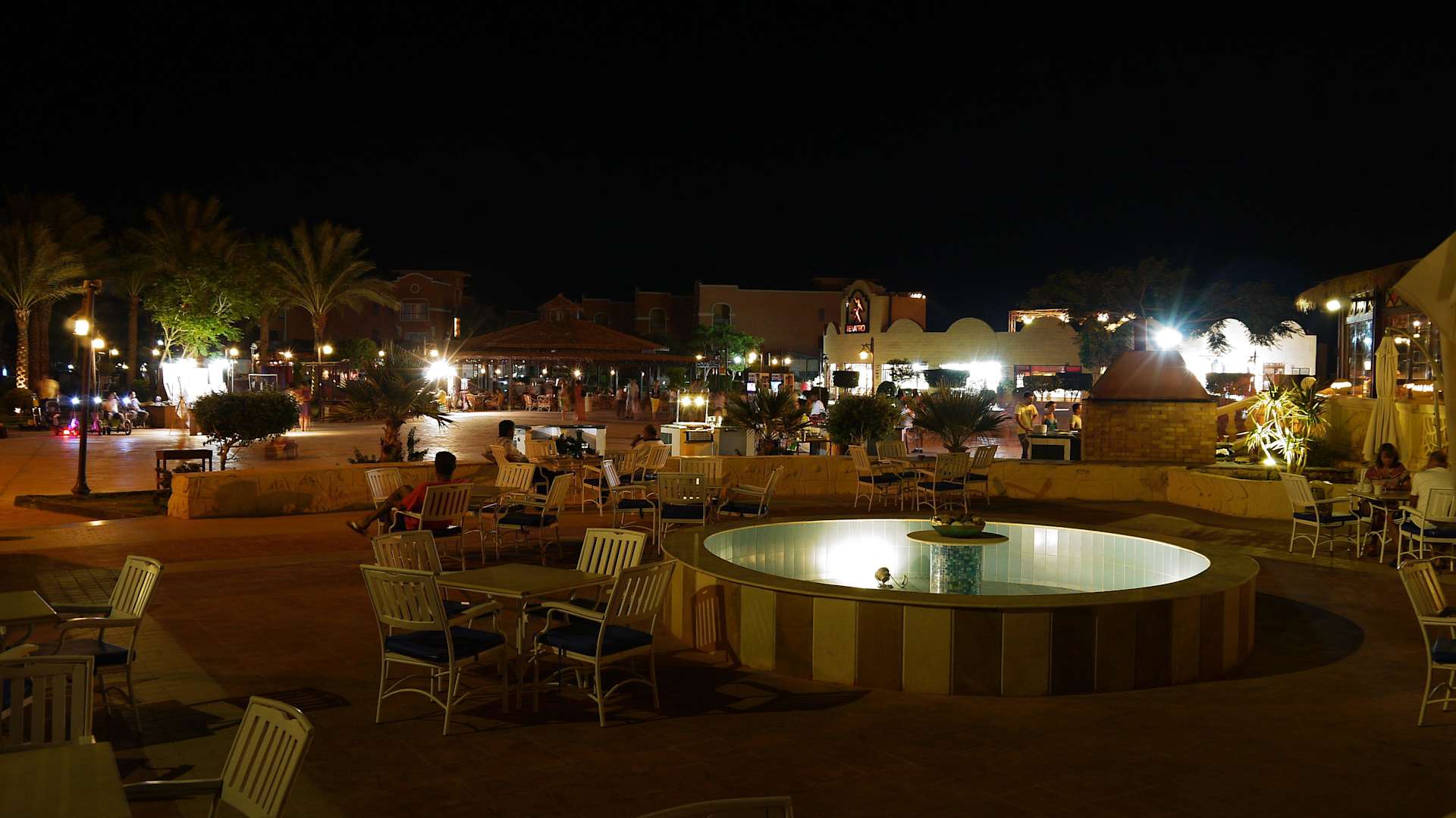 Posezení u fontánky před restaurací