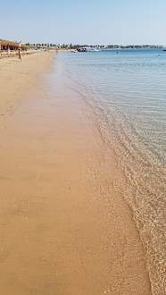 Mega feiner flacher Sandstrand mit ruhigem Meer