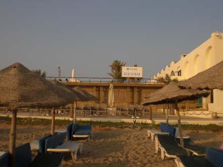 Blick vom Strand zur Beachbar