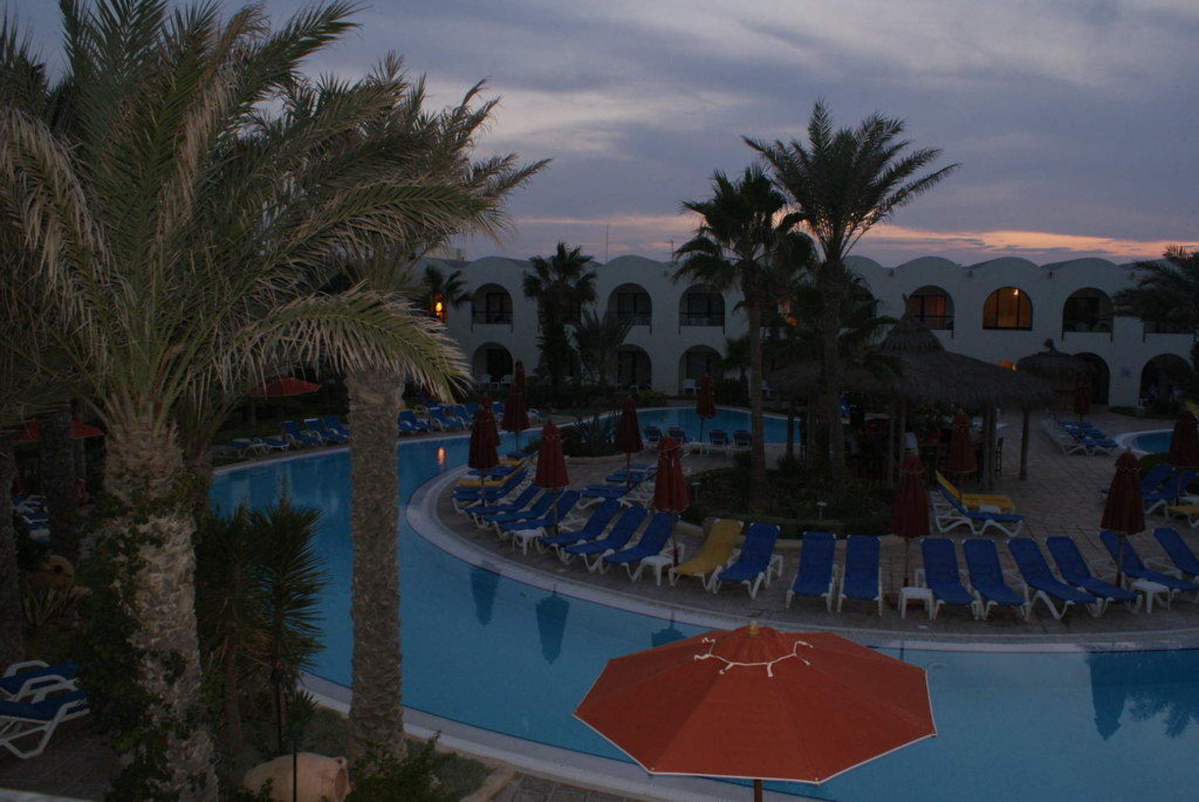 Blick auf den Pool am Abend