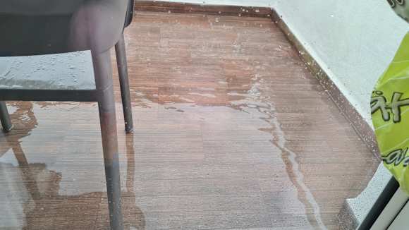 Gratis Fußbad auf dem Balkon, weil das Wasser nicht abläuft.