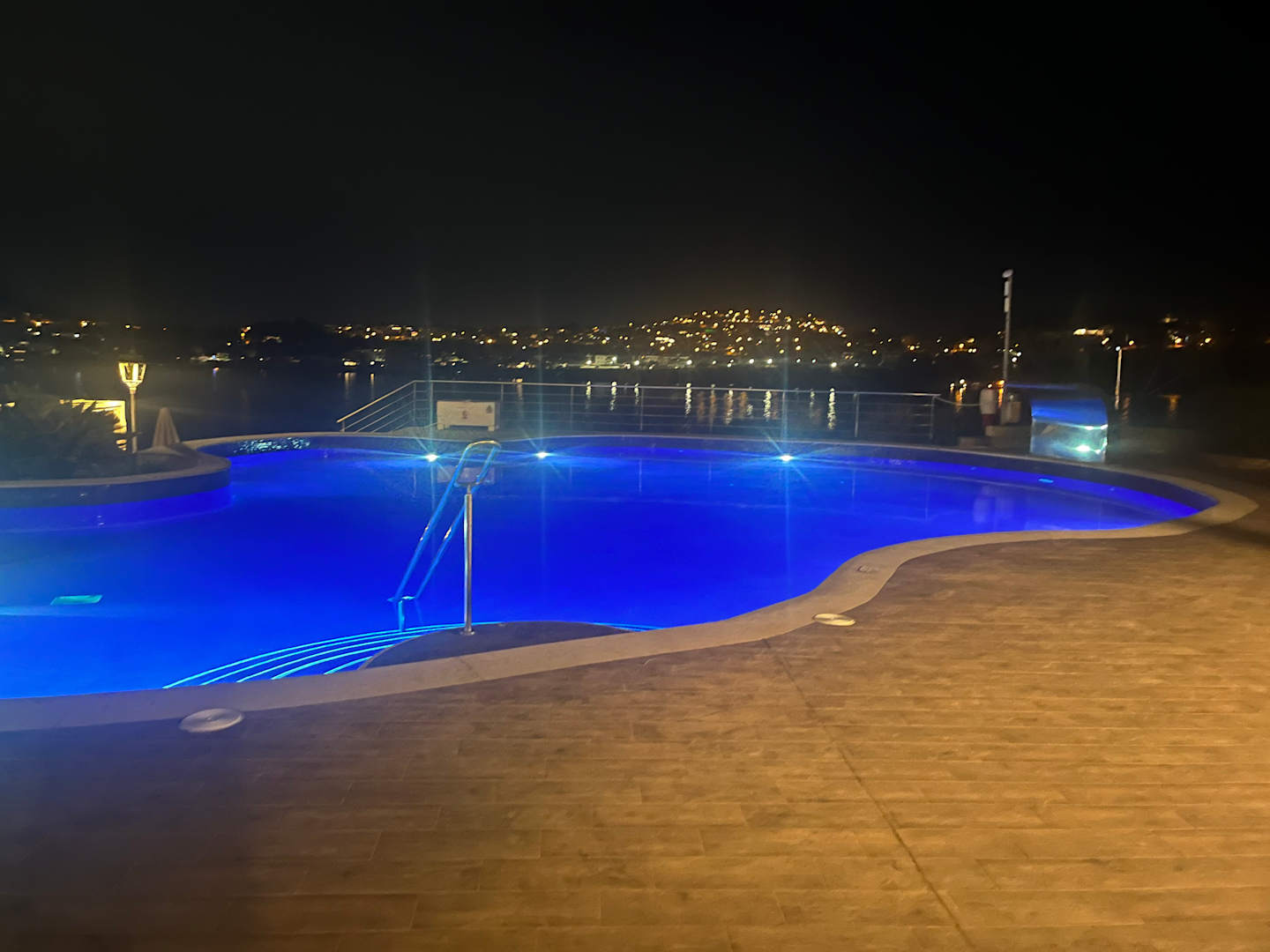 Poolanlage am Abend