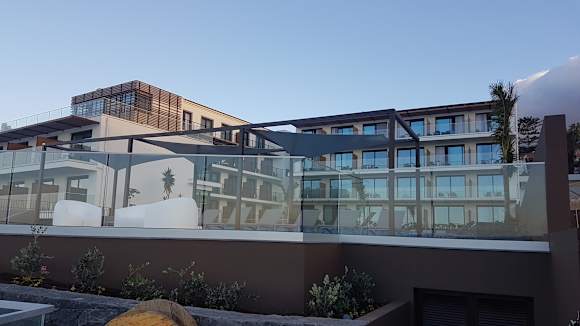 Außenansicht, Blick über den Poolbereich zum Galomar