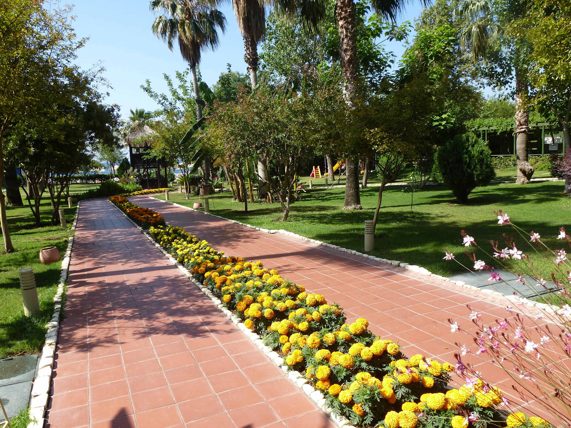 Weg durch die Gartenanlage zum Strand