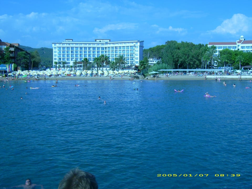 Blick vom offenen Meer auf das Hotel.