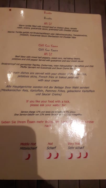 Mexikaner Speisekarte
