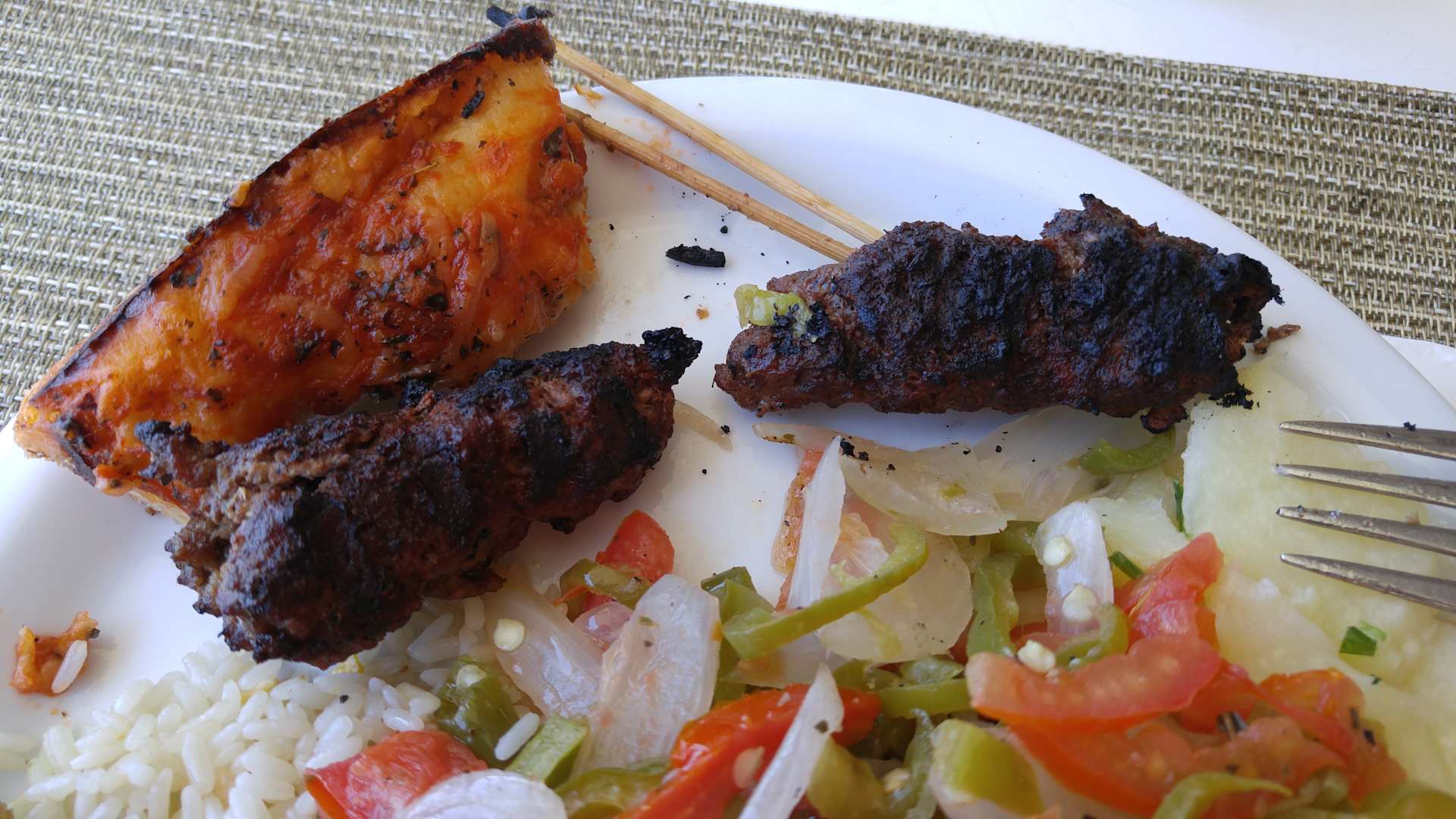 RestaurantEs war noch das Beste, das wir zum Mittagessen in der Strandbar finden konnten. Es war ungenießbar und vielleicht sogar gesundheitsgefährdend. Ich empfand es als ekelhaft und hatte vom Probieren noch stundenlang den verkohlten Geschmack im Mund.